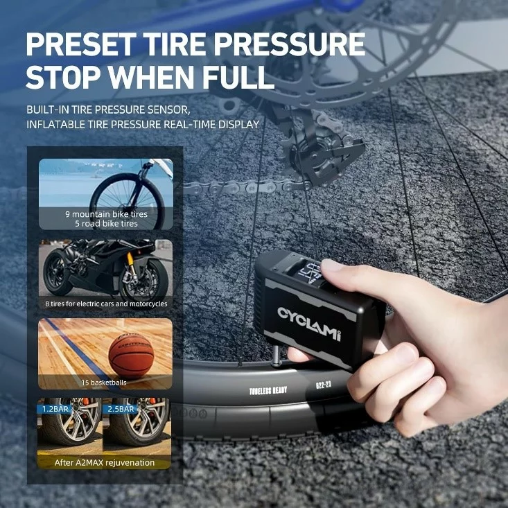 A2MAX Fahrradpumpe Elektrisch Mini Fahrradpumpe Luftpumpe mit Digitalem Manometer 150PSI Automatische Abschaltung mit Presta- und Schrader-Ventil für E-Bike Mountainbike Citybike