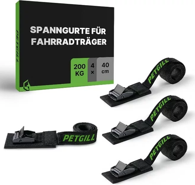 Spanngurte mit Polsterung, Für Alle Fahrradträger Geeignet | 4 Stück | Länge 40 cm | Breite 20 mm | 200 Kg Belastbarkeit | Klemmschloss, Spanngurt für Dachträger, Fahrrad, E-Bike, Kajak Zurrgurt