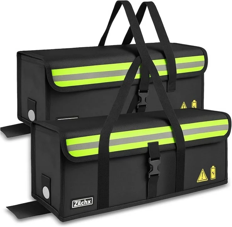 Ebike Akkutasche, 2PCS Feuerfeste Akkutasche bis 2300 °C, 8 Schichten Brandschutzbox, Wasserdicht Explosionssicher Lipo-Sichere Tasche, zum Laden Transportieren Lagern, 51x16x16cm (2PCS, L)