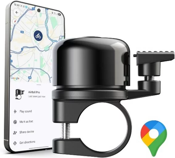 AirBell Pro für Android - Fahrradklingel mit integriertem Tracker, kompatibel mit Google Mein Gerät Finden Netzwerk (22.2mm Standard Lenker)