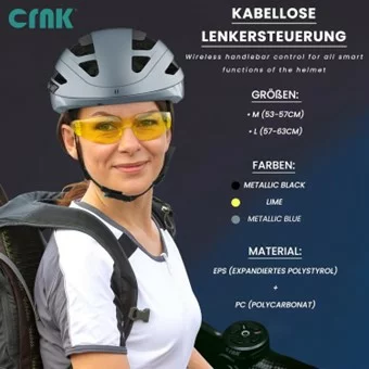 CRNK Angler Alpha Fahrradhelm – Unisex E-Bike & Rennrad Helm mit LED Blinker, Bremslicht & Rücklicht – Integrierte Bluetooth Kopfhörer & Mikrofon – Aerodynamisch, Leicht & Belüftet