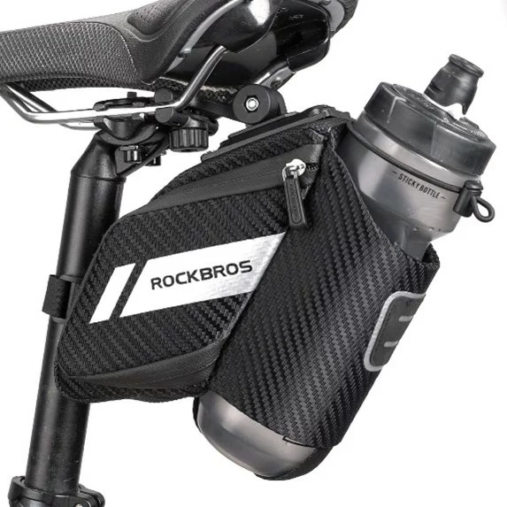 ROCKBROS Fahrradsatteltasche Fahrradtasche mit Flaschenhalter Reflektierend Fahrradsitz Tasche für MTB, Rennrad, Faltrad Schwarz ca. 1L